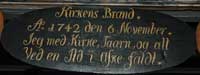 Af G.E.C.GAD "Danske Kirker" fremgår det, at kirken den sjette november 1742 blev antændt, muligvis af et lynnedslag. Tilbage stod kun nogle stærkt ødelagte murrester. Efter reparation, og indsætning af nyt inventar, var der genindvielse første søndag i advent 1743.