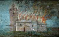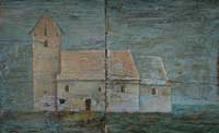 Kirken er brunden to Gange, og naar den kommer i Brand tredie Gang, skal der graves i Højen, og Guldet bliver da fundet, og det kan Kirken bygges op for igjen.