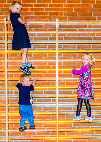 Nogle friske helt unge klatrer lidt - mest for sjov - kondition og iver synes ikke at mangle noget.